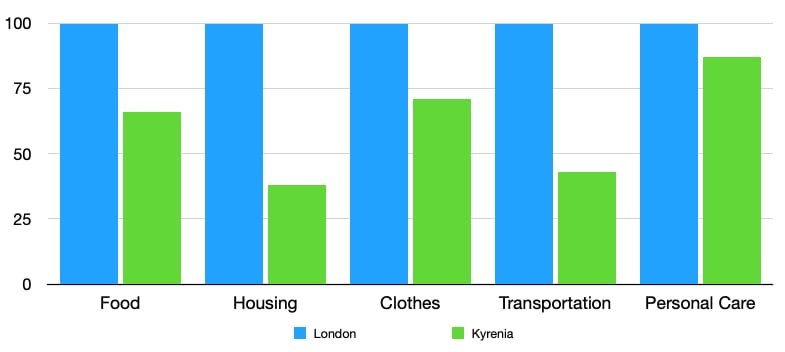 We picked London for our city comparison because the greater London area is where the largest number of Busy Bees customers come from. Like all world-class cities, London is expensive so as you would expect Kyrenia is 53% cheaper.